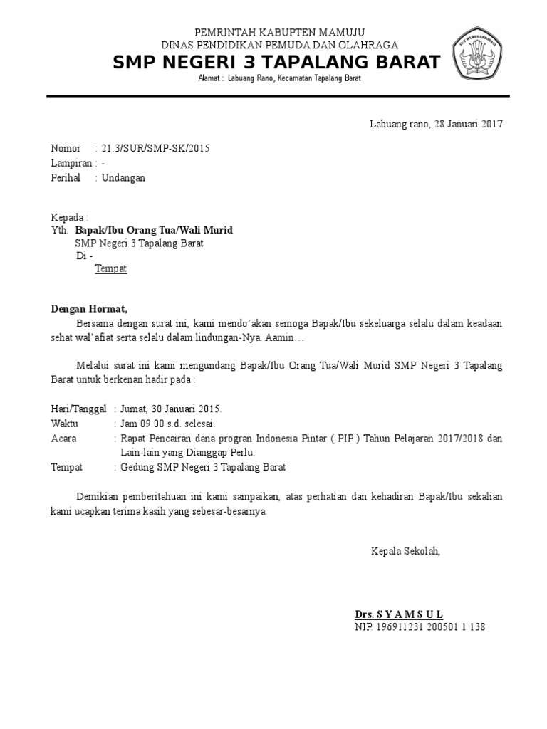 Contoh Surat Undangan Rapat Komite Sekolah Untuk Wali Murid Nusagates from saran.id Kamu bisa menggunakan aplikasi pengolah kata microsoft word untuk memulai membuat suratnya. Contoh surat undangan rapat wali murid sd smp sma terbaru 2018 dalam postingan saya kali ini akan membagikan salahsatu contoh surat dinas resmi yang banyak dibutuhkan sekolah pada umumnya. Surat undangan rapat guru termasuk surat resmi. Copy paste atau anda dapat mendownloadnya contoh surat undangan wali murid tahun 2017/2018, klik link download jika anda ingin download contoh. Surat undangan rapat wali murid adalah surat yang dikeluarkan oleh pimpinan sekolah untuk pada wali murid untuk membahas sesuatu yang berhubungan dengan anak didik. Maka dari itu, kami mengundang bapak/ibu untuk hadir pada rapat wali murid yang akan dilaksanakan pada : Sabtu, 24 februari 2018 waktu : Undangan rapat orang tua/wali murid baru tahun pelajaran 2014/2015 dengan komite dan keluarga besar man cipasungfull description.
