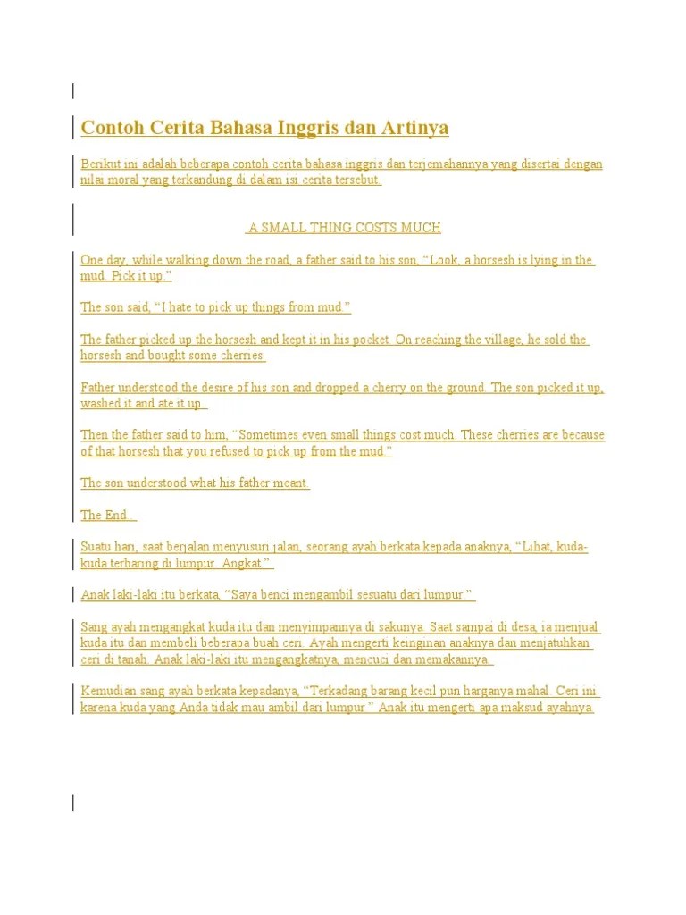Contoh Cerpen Dalam Bahasa Inggris Dan Terjemahannya - 37 Cerpen Bahasa Inggris Dan Terjemahannya Ideas In 2021 Cerita : Story telling merupakan suatu kegiatan atau aktivitas berupa seni dengan menceritakan ulang sebuah cerita yang berbentuk legenda ataupun fabel .
