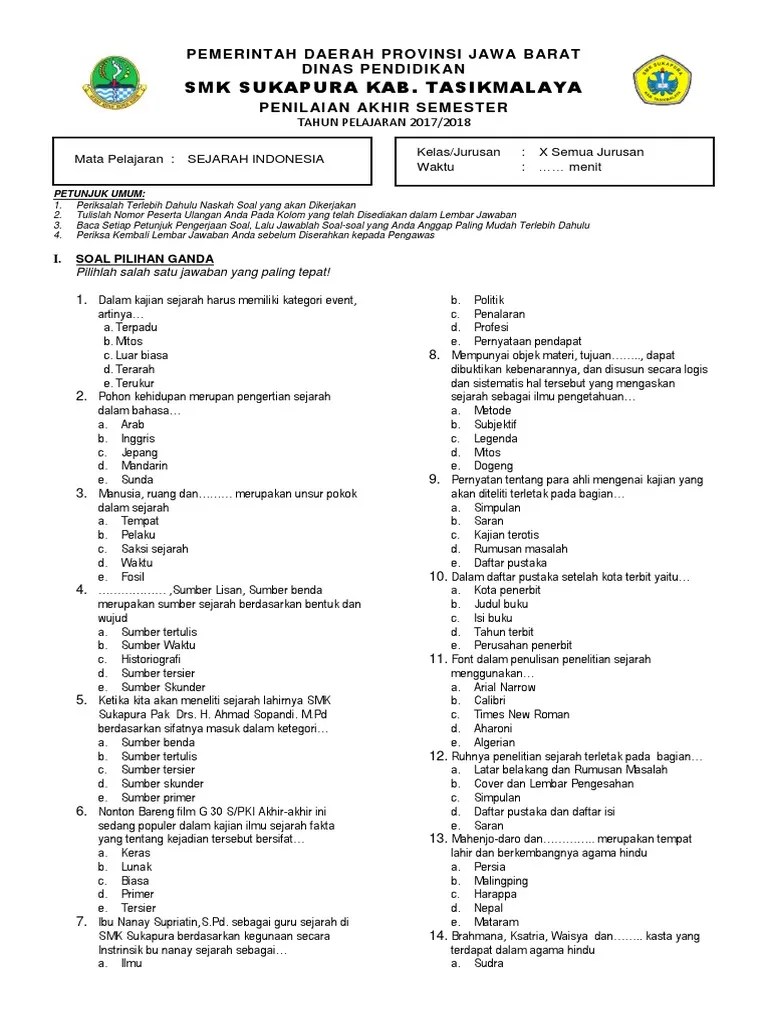 Soal sejarah indonesia kelas 11 semester 1 2 dan jawaban . Contoh soal kepegawaian kelas 11 pilihan ganda guru ilmu sosial. Contoh soal ekonomi kelas x semester 1 kurikulum 2013 beserta jawabannya pilihan ganda. Contoh soal pilihan ganda kunci jawaban pembahasan sejarah peminatan kelas 11. Contoh soal sejarah indonesia kelas 11 · 1.